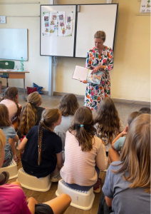 In ihrer Lesung nahm Frau Düwell die Kinder mit auf eine Reise in die Gedanken- und Gefühlswelt der achtjährigen Dora, die mit ihrer Familie aus Tel Aviv nach Leipzig zieht. Anfangs noch fremd in der neuen Stadt, findet Dora schnell neue Freundinnen und entdeckt viele schöne Seiten an ihrem neuen Zuhause – bis sich plötzlich alles verändert: Fragen tauchen auf, Unsicherheiten wachsen, und Dora muss sich mit Vorurteilen und Ausgrenzung auseinandersetzen.