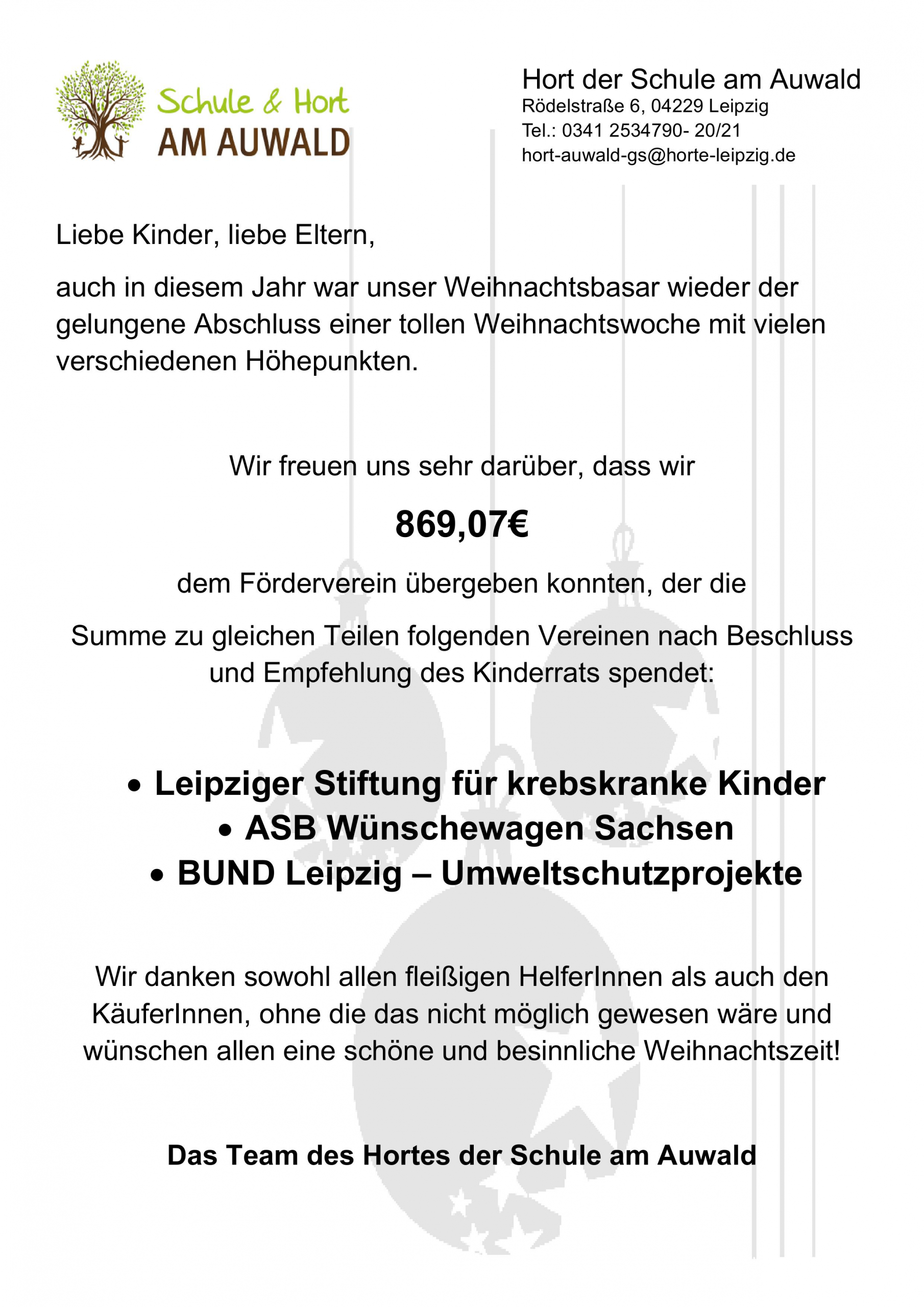 Bedarfseinrichtung für die Notbetreuung am 22.12. und 23.12.2025 ist der Hort der Regine Heinike Schule oder der Hort der Schule Grosszschocher