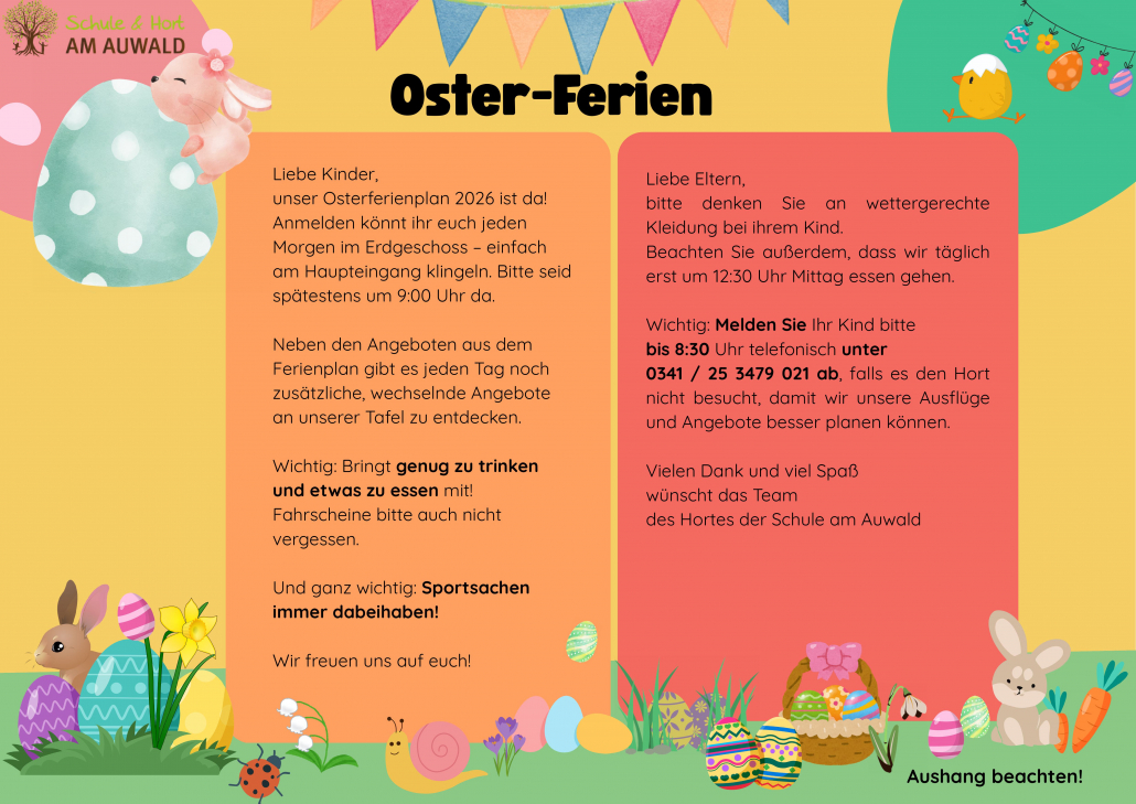 hier findet ihr Informationen zu aktuellen Entwicklungen und Veranstaltungen im Hort, wie zum Beispiel die neuesten Ferienpläne oder Angebote.